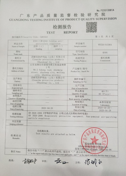 KN95口罩检验报告