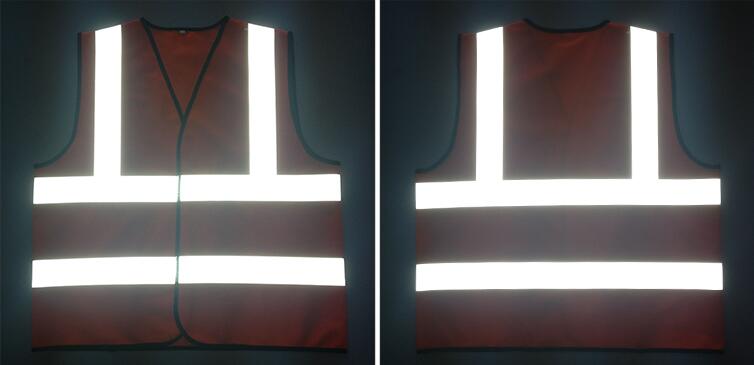 反光背心中的反光部分是运用晶格的微菱型产生折射及高折射率的玻璃微珠回归反射原理,通过调焦后处理的进步工艺制成。它能将远方直射光线反射回发光处,不论在白天或黑夜均有良好的逆反射光学性能。尤其是晚上,能够发挥如同白天一样的高能见度。使用这种高能见度反光材料制成的安全服,无论穿着者是在遥远处,还是在着光或散射光干扰的情况下,都可以比较容易地被夜间驾驶者发现。反光材料的出现顺利解决了“看到”和“被看到”这一夜间行车难题。